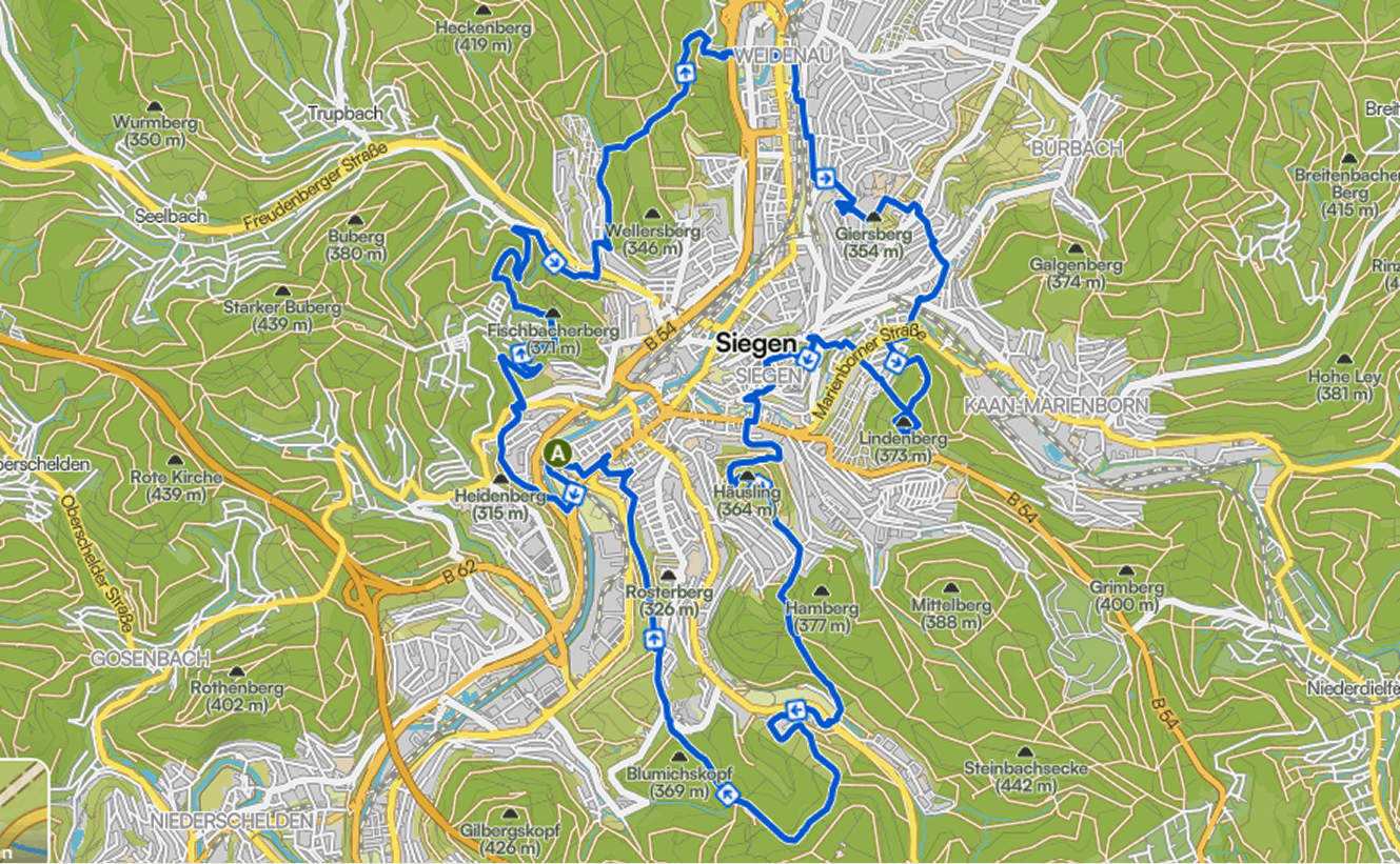 Den Seven Summits Siegen verbinden sportliche Herausforderung mit der Natur: Entdecke unsere abwechslungsreichen Trails rund um Siegen: Wälder, Pfade, Anstiege und tolle Aussichten erwarten dich. Die Strecke verbindet sportliche Herausforderung mit natürlichem Genuss – ideal für Teams, Laufbegeisterte und alle, die gemeinsam ein Abenteuer erleben wollen